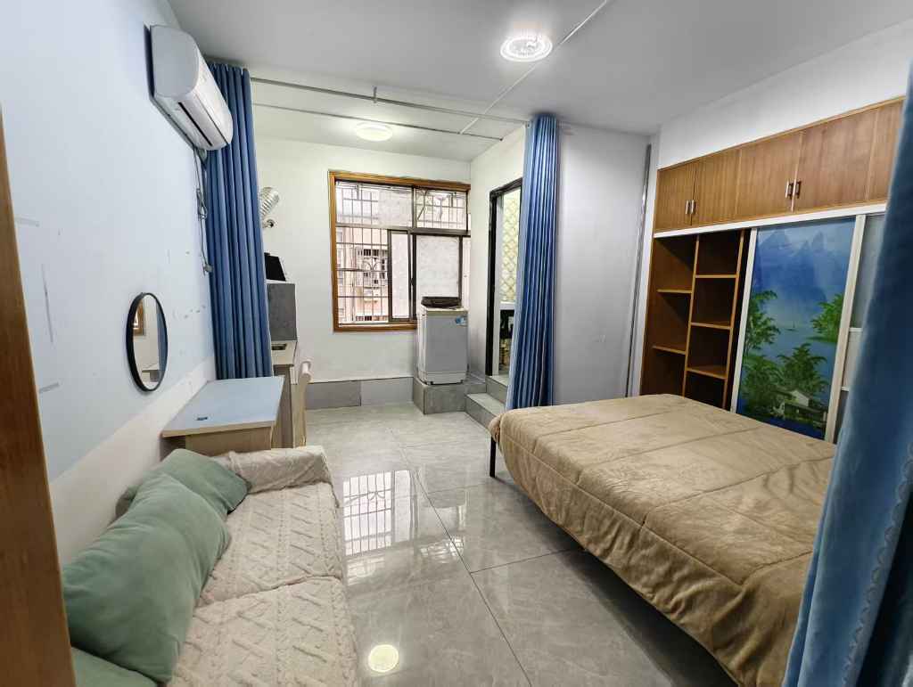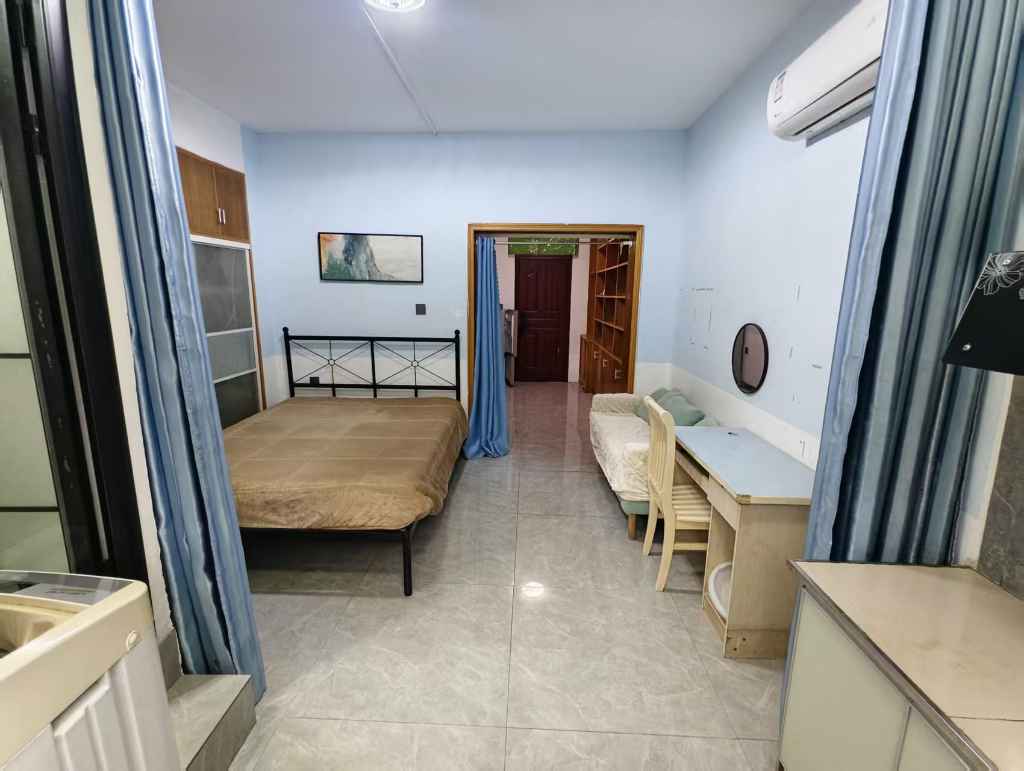 • 房屋设施:水,电,空调,床,洗衣机,热水器,抽油烟机,电冰箱,衣柜,橱柜,茶几,宽带,家私家电齐全